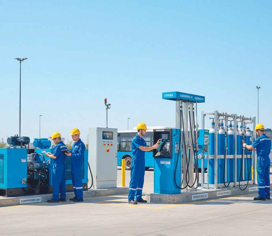ensuring the optimal performance and longevity of CNG stations through: End-to-end project execution – from installation and commissioning to operation and maintenance of CNG compressors. High-quality material supply – including dispensers, high-pressure fittings, mass flow meters,